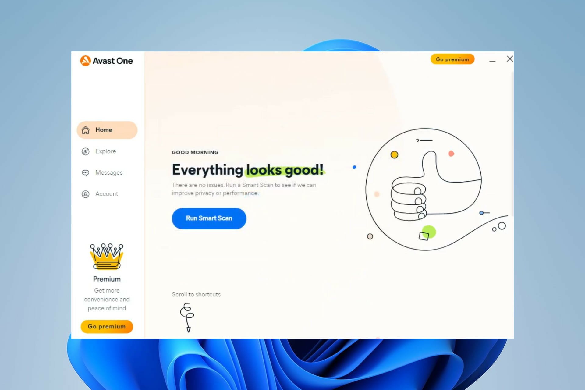 To perform a scan, just scroll down to the scan shortcuts. You’ll get access to the VPN and other features as well. All of them can be run with only a few mouse clicks. Also, the Explore button brings up a list of all of its features.