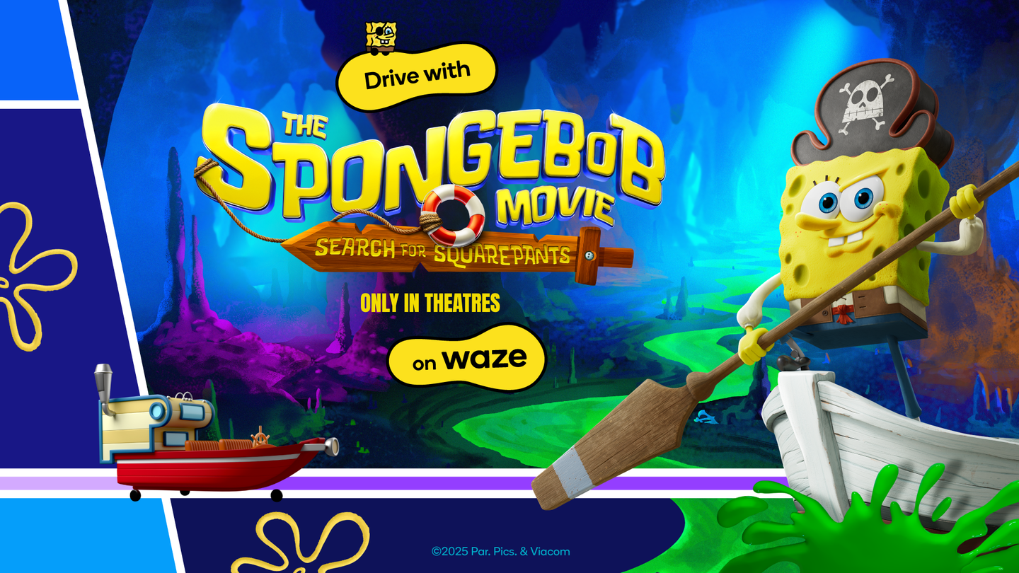 Download the latest version of Waze and look for the “SpongeBob” banner (available globally in English, French, Spanish and Portuguese) in the left-side column menu of the app or activate it now.