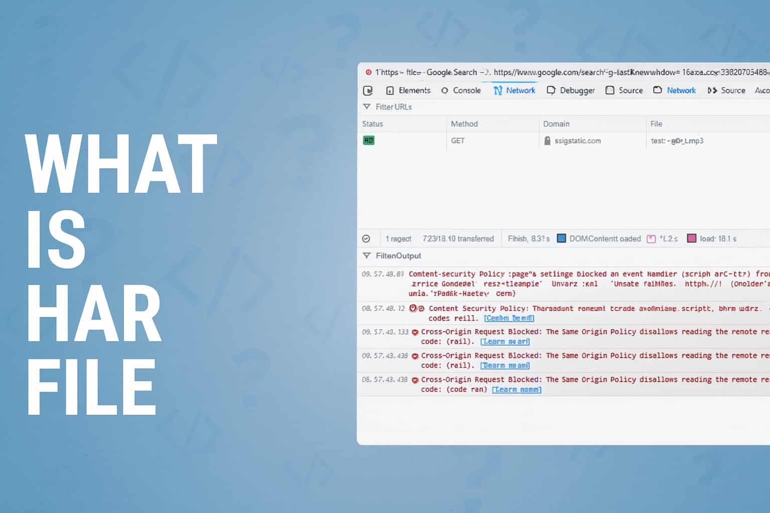 A HAR file captures the complete loading process of a webpage and helps you diagnose performance problems or failed requests. You can generate one in any major browser.
