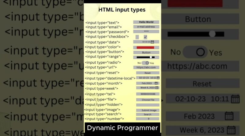 Input types in html | html tutorial | html tags list | Input tags in html | Web Developement Tutorial | Front end development Tutorial …