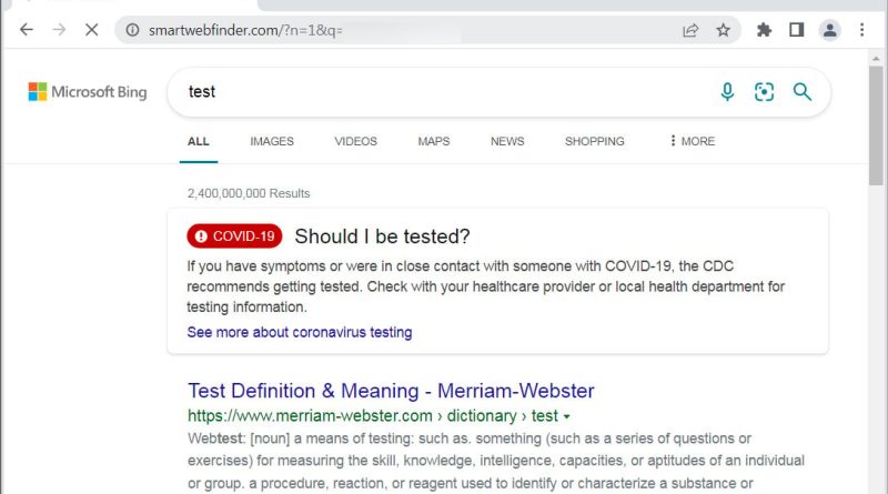 When installed, these extensions modify your web browser’s configuration to automatically send all searches through smartwebfinder.com, which ultimately redirects to Bing.com to show the requested search results.