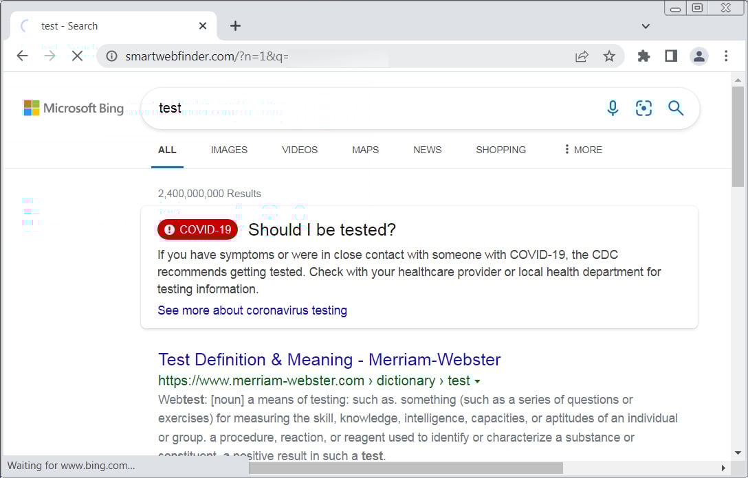 When installed, these extensions modify your web browser’s configuration to automatically send all searches through smartwebfinder.com, which ultimately redirects to Bing.com to show the requested search results.